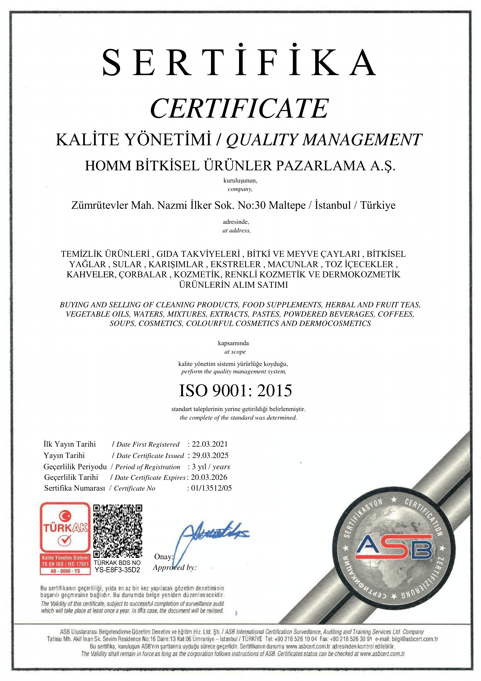 Kalite Belgelerimiz ve Sertifikalarımız